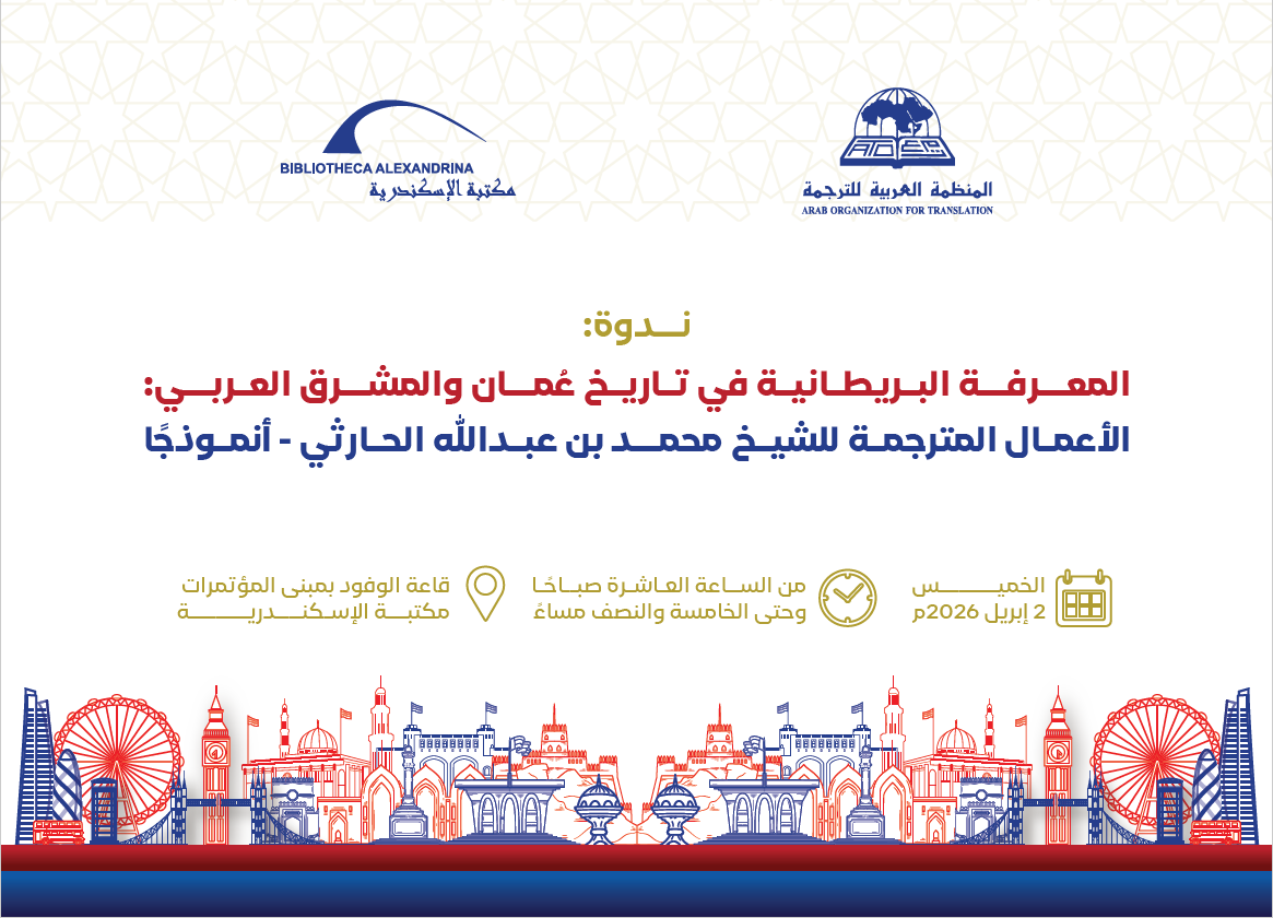 ينظم قطاع التواصل الثقافي بمكتبة الإسكندرية بالتعاون مع المنظمة العربية للترجمة ندوة علمية بعنوان "المعرفة البريطانية في تاريخ عُمان والمشرق العربي"، بمشاركة نخبة من الأكاديميين والباحثين المتخصصين، وذلك في تمام العاشرة صباح يوم الخميس الموافق 2 إبريل بقاعة الوفود بمركز مؤتمرات مكتبة الإسكندرية.