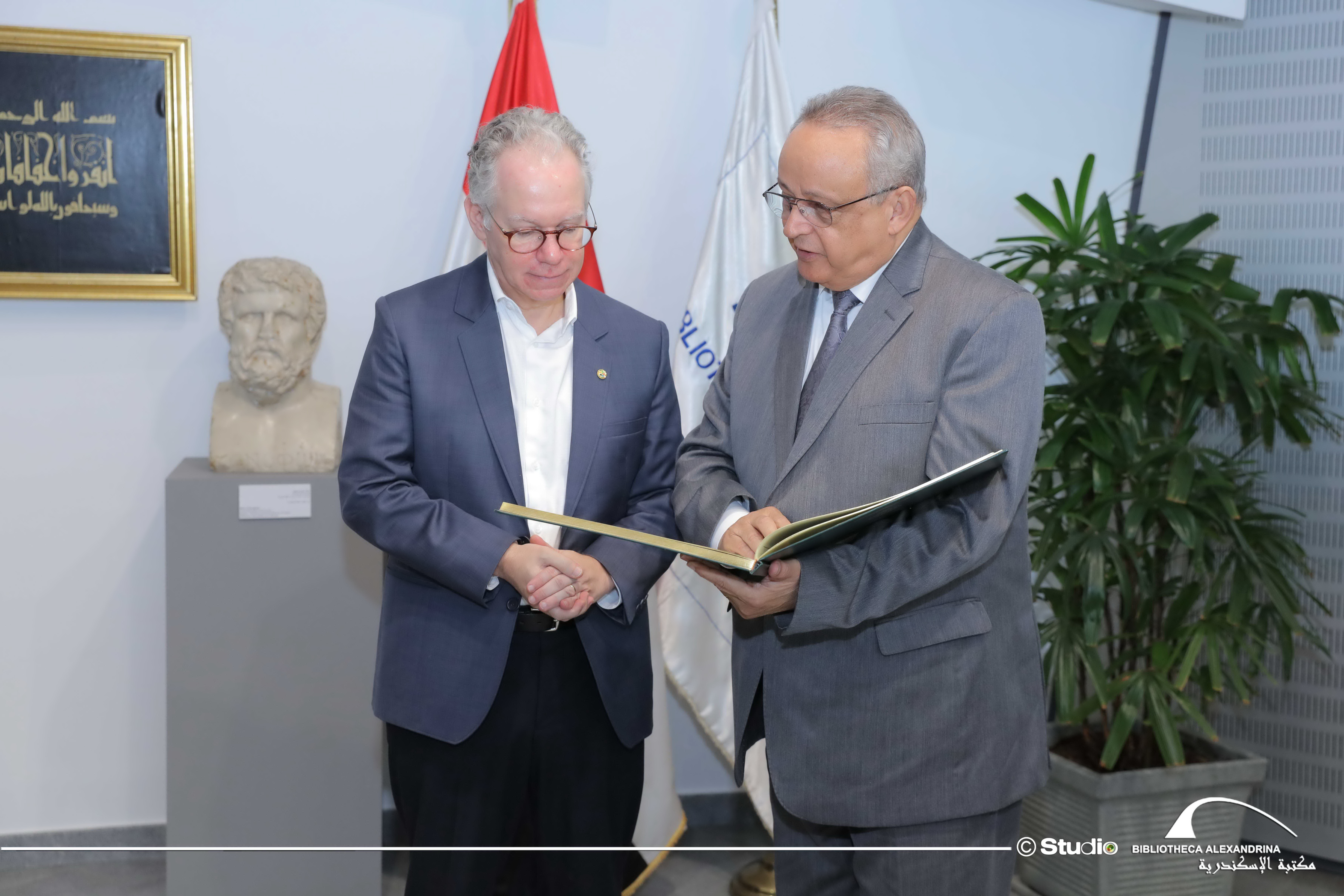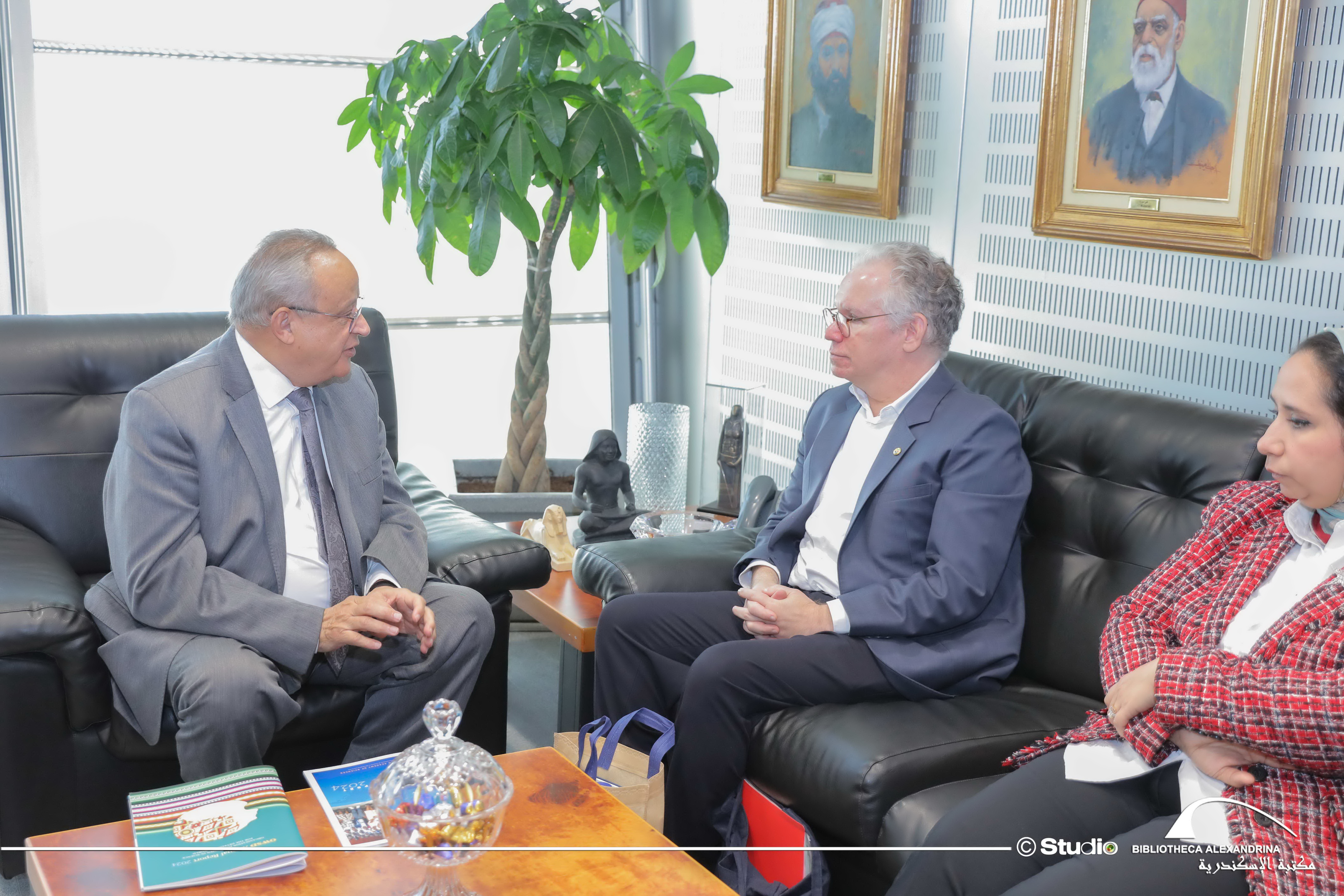Dr. Ahmed Zayed, Director of the Bibliotheca Alexandrina, welcomed yesterday Dr. Marcelo Knobel, Executive Director of the World Academy of Sciences for the advancement of science in developing countries (TWAS), which works to promote science and engineering for sustainable prosperity in developing countries. This visit comes as part of joint efforts between the Bibliotheca Alexandrina and TWAS to strengthen cooperation between the two institutions as strategic partners in developing and disseminating knowledge, promoting science, and supporting scientific research.