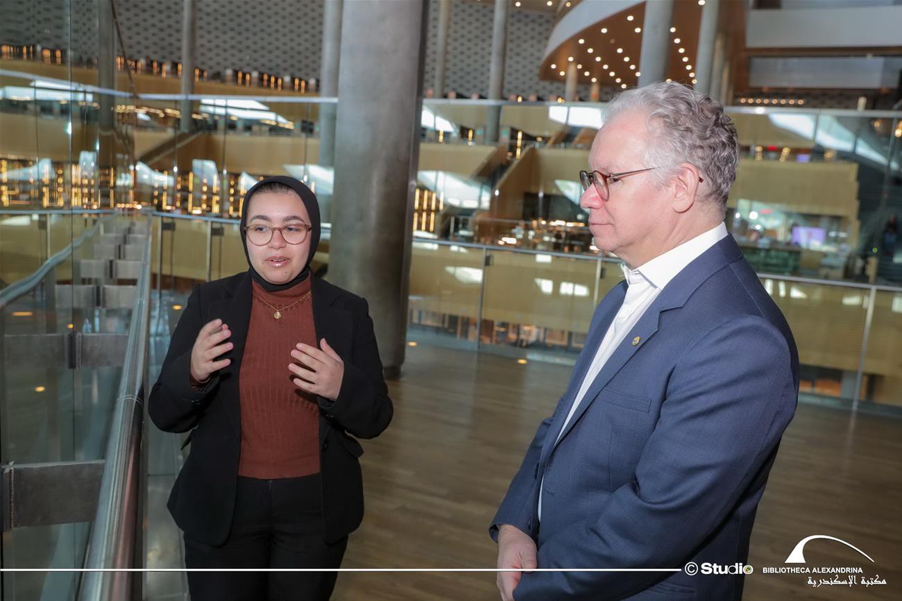 Dr. Marcelo Knobel started his visit with a comprehensive tour of the Bibliotheca Alexandrina, followed by a meeting with Dr. Marwa El-Wakil, Head of the Academic Research Sector, and the team of the Center for Special Studies and Programs and TWAS-AREP.