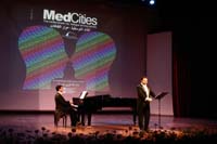 Alexandrie, 24 février 2005—L’inauguration de MedCities a eu lieu le lundi 21 février 2005. Cette manifestation d’importance a vu s’exprimer Dr. Ismail Serageldin, directeur de la Bibliothèque, M. Abdel Salam Mahgoub, gouverneur de la ville d’Alexandrie, M. Emmanuel Mbi, directeur du Département Egypte, Yémen et Djibouti à la Banque Mondiale, ainsi que M. Traugott Schöfthaler, directeur de la Fondation Anna Lindh pour le dialogue entre les cultures. A la suite de quoi s’est produit le ténor de renommée mondiale Vincenzo La Scola.