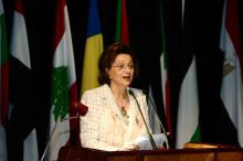 Mme. Moubarak lors de son intervention |